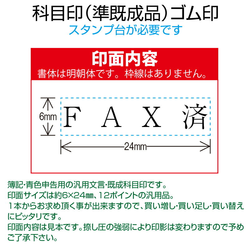 【 ゴム印 】科目印 『FAX済』 6×24mm 木製台木(準既製品) 【店頭受取対応商品】【YOUNG zone】【HLS_DU】 会計 確定申告 青色申告 白色申告 出納長 簿記 帳簿 日計表